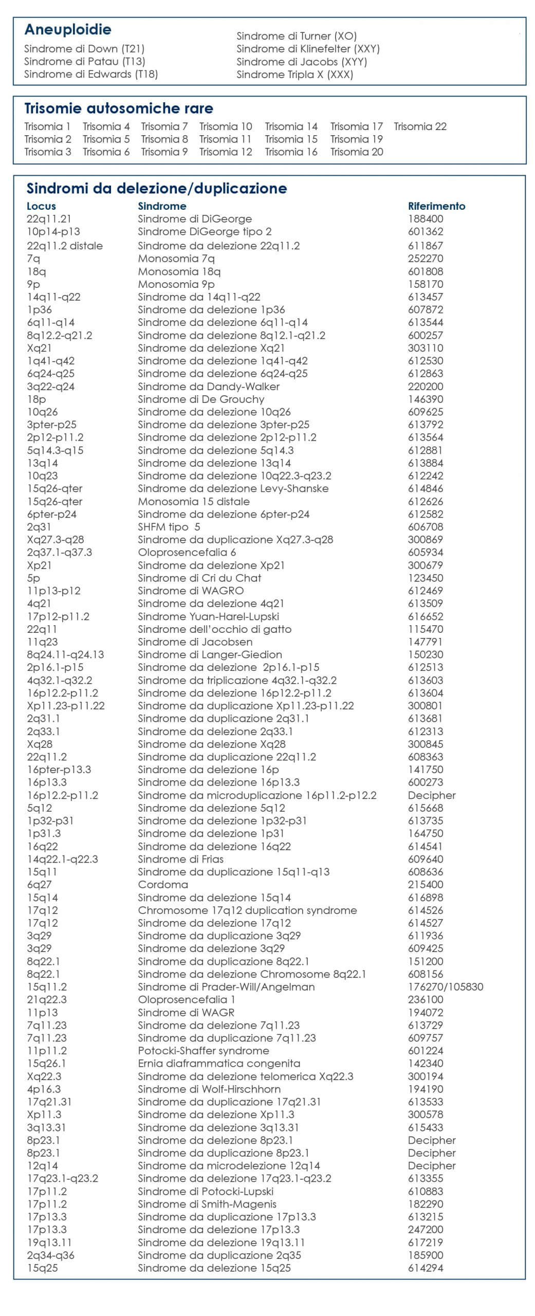 - يتيح الخيار الواسع النطاق اكتشاف التشوهات تحت المجهرية (حتى 1 مليون زوج قاعدي) المؤثرة على جميع الكروموسومات