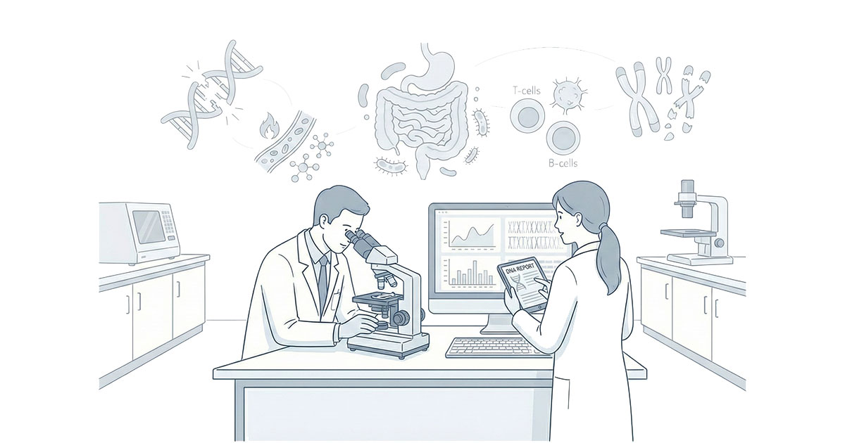 Through advanced molecular testing developed by Bioscience Institute and integrated into a digital clinical platform, BIOXPACE enables the early detection of subtle yet impactful alterations—including genotoxic stress, cellular senescence, immune dysfunction, and microbiome imbalance—long before clinical manifestations appear.