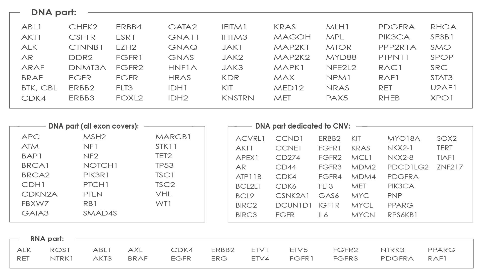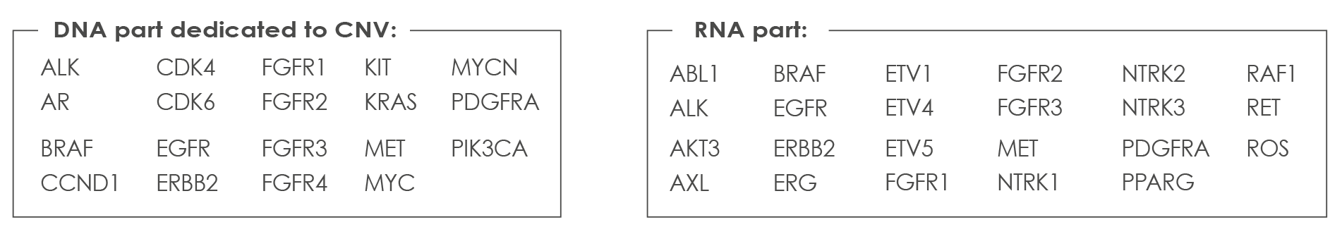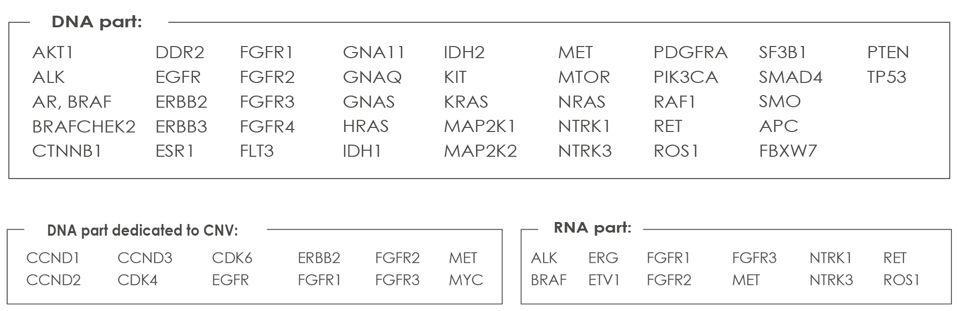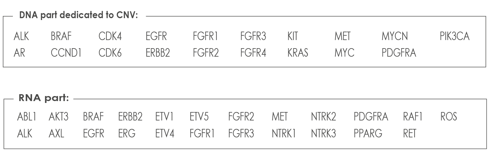 covers all classical mutations plus Copy Number Variants. Covering variants in KIT, PDGFRA and the other genes of the Oncomine™ Focus Assay