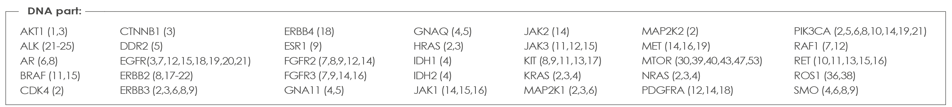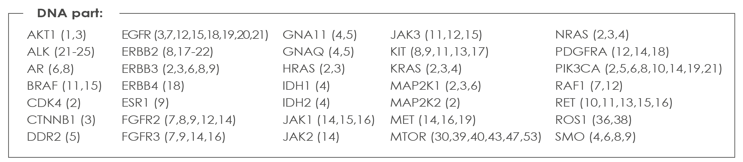 Oncomine™ Comprehensive Cancer Assay-v3 (DNA Part): this Assay covers 161 of the most relevant cancer driver genes, including increased kinase domain coverage and representation of genes involved in DNA repair. This Assay is Optimized for challenging formalin-fixed, paraffin-embedded (FFPE) samples and is based on Ion AmpliSeq technology, it requires just 10 ng of input DNA or RNA per reaction.