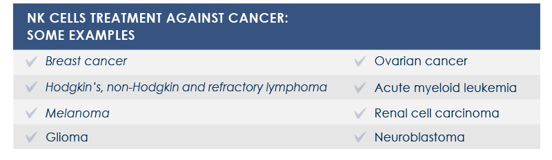 Several studies demonstrated NK cell-based therapies feasibility and safety. The use of haploidentical (that is, from a blood relative – parent, son, daughter, sibling or cousin) or autologous (that is, from the same patient that will be treated) NK cells, coupled with new approaches to sensitize against cancer cells, opened new ways in the field of immuno-oncology. These strategies are useful both from a therapeutic point of view and for the development of anticancer immunity to delay disease development.
