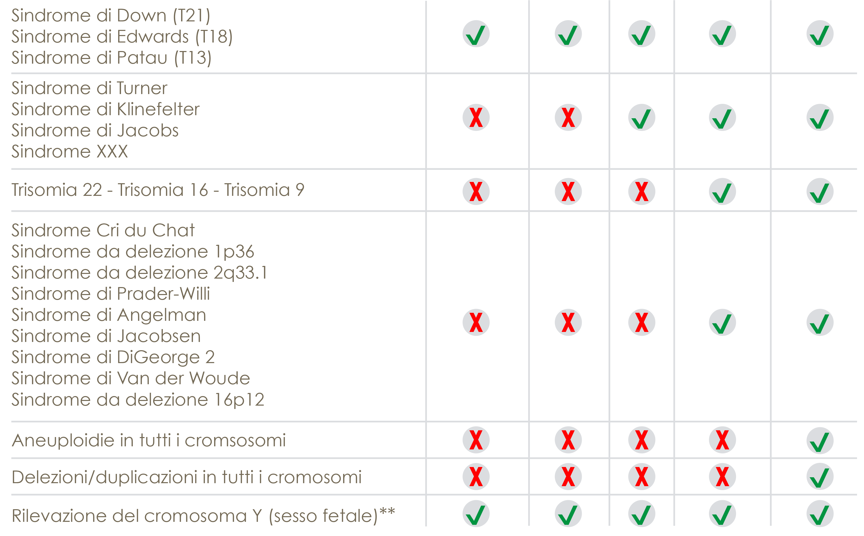 The analysis of the entire genome makes it possible, by applying a proprietary calculation algorithm (FCAPS *), to widen the search for aneuploidies and deletions / duplications to all chromosomes. The WGA Gtest represents the most recent evolution of fetal DNA tests and the overcoming of the obsolete sequencing technologies on single chromosomes (still existing for their low cost). It is therefore possible to perform a non-invasive prenatal screening of the entire chromosomal kit to identify fetal chromosomal abnormalities, even of very small dimensions.