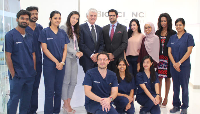 All procedures (biopsies, sample collections, cell extraction, cultured cell expansion and transplantation) are conducted at the laboratories and clinic based in Dubai Healthcare City (DHCC). The facilities are licensed and inspected by the UAE Ministry of Health and DHCC, who also inspected the Bioscience Institute laboratories in San Marino before issuing the specific licenses.