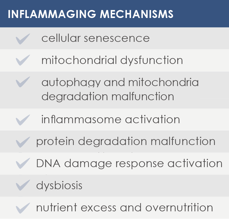 The population of microbes living in the gut (the gut microbiota) performs many beneficial functions. If altered, however, it can contribute to the development of inflammatory phenomena which, silently, increase the risks to health. Even the simple fact of aging can be associated with alterations in the microbiota (dysbiosis) capable of triggering inflammation. Precisely because it is associated with aging, this phenomenon is known as inflammaging.