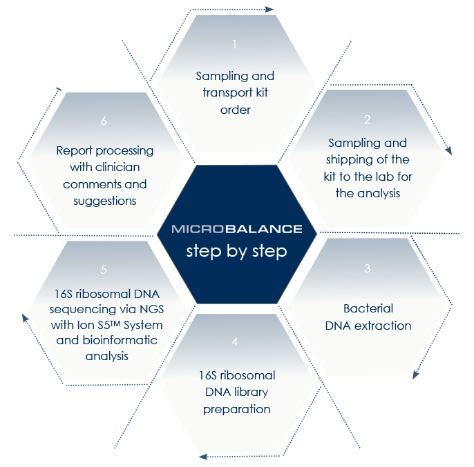 The MICROBALANCE test analyzes the genetic material of the microorganisms that live in the intestine and vagina through Next Generation Sequencing (NGS), a state-of-the-art technology for identifying bacterial composition and balance within the microbiota.